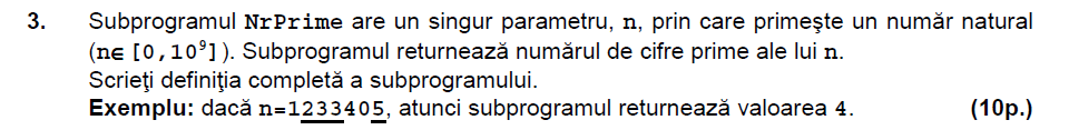 Mai jos puteti gasi enuntul si rezolvarea problemei 3 de la subiectul al III-lea de la examenul de bacalaureat la informatica (stiinte ale naturii) din august-septembrie 2015.