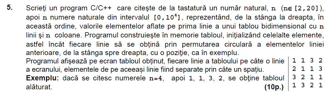 Mai jos puteti gasi enuntul si rezolvarea problemei 5 de la subiectul al II-lea de la examenul de bacalaureat la informatica (mate-info) din august-septembrie 2015.