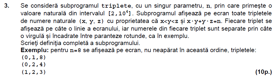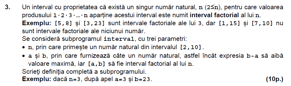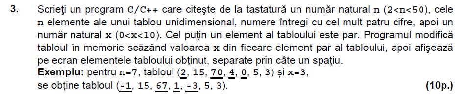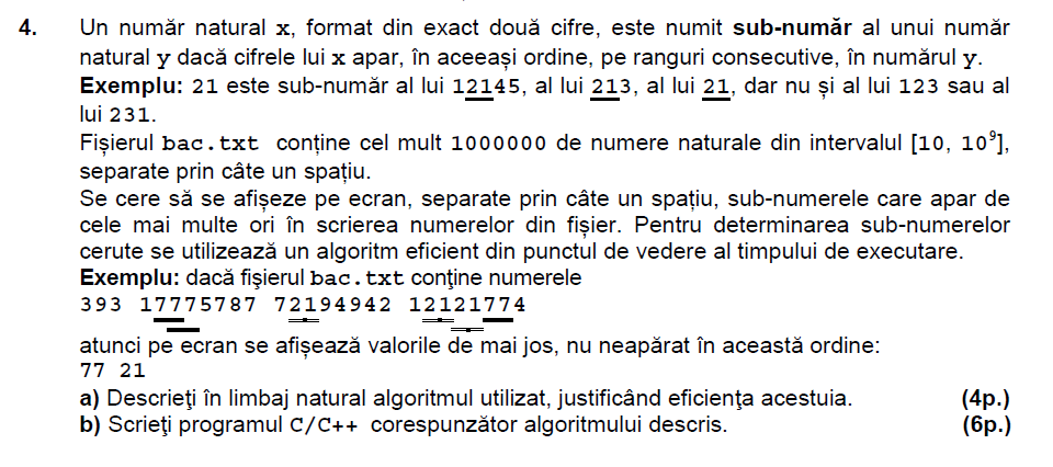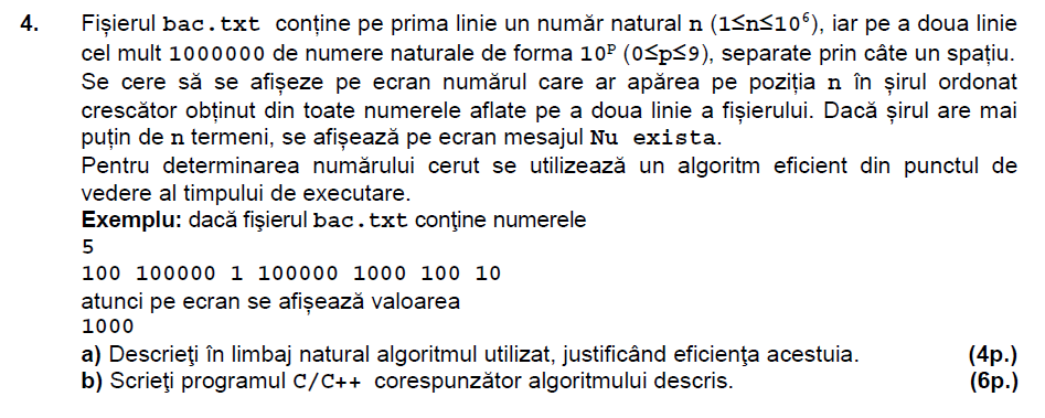 Mai jos puteti gasi enuntul si rezolvarea problemei 4 de la subiectul al III-lea de la sesiunea speciala a examenului de bacalaureat la informatica din anul 2014.
