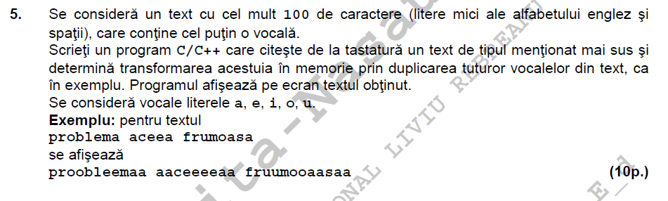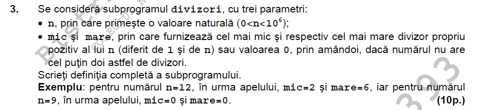 Mai jos puteti gasi enuntul si rezolvarea problemei 3 de la subiectul al III-lea de la simularea examenului de bacalaureat la informatica din anul 2014.